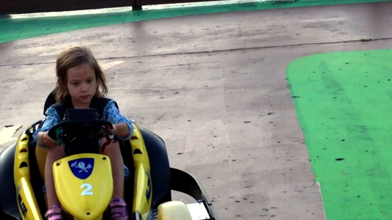 A tot girl eats a sour piece of candy and makes a sour face in slow motion.