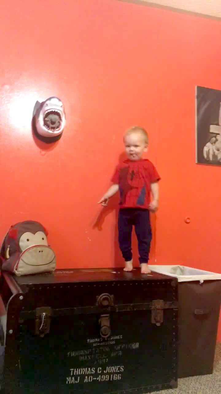 A tot boy attempts to tell Alexa to "play elmo" his mother tells him that they don't have an Alexa.