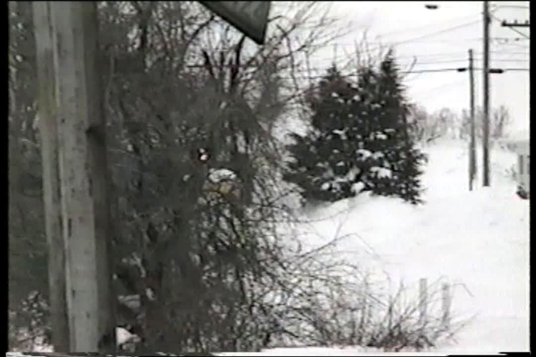 A man and his family sleds down an icy road screaming outdoors. His son hangs on his wife's legs and swings side to side. Go-Pro ?