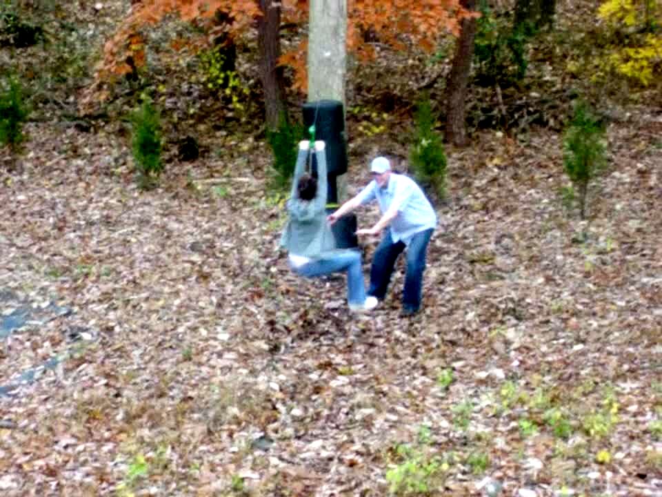 Woman Hvl2024 Fall-Down Backyard Falls Trees Crashes Laughter Collides Zip-Line Wire Glides Handles