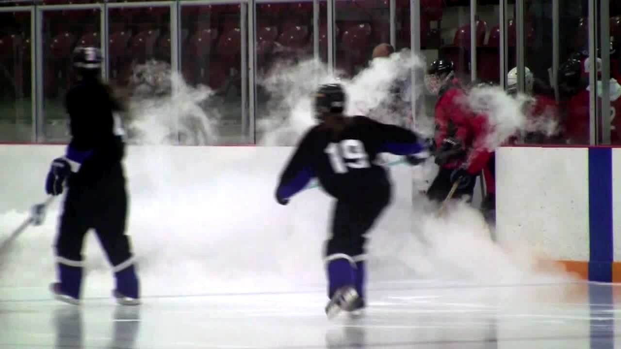 Two men hold up a sign and one of them asks a boy's soccer/football team "Are you gonna let that little piece of paper stop you?" before they run at the banner, but are unable to crash through it and fall underneath it before they try again.