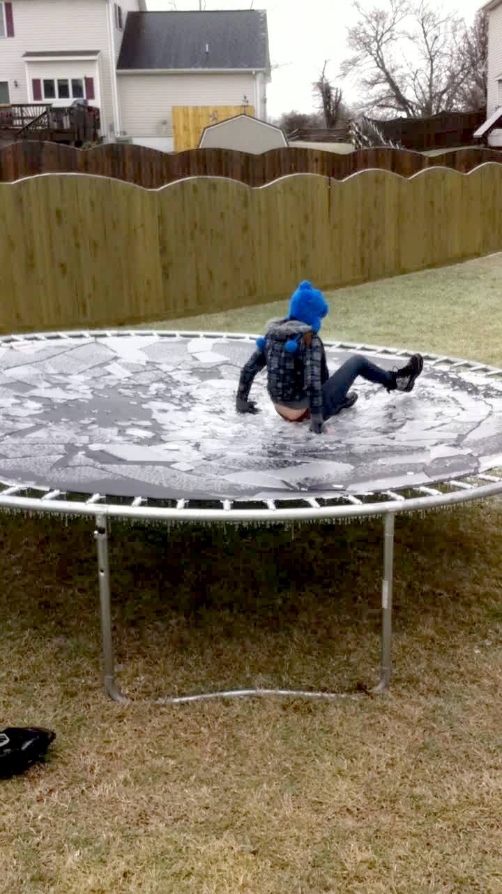 A teen boy smashes his face into his birthday cake. It's frozen and doesn't smash and he hurts his nose. Practical jokes.