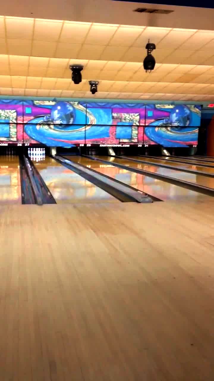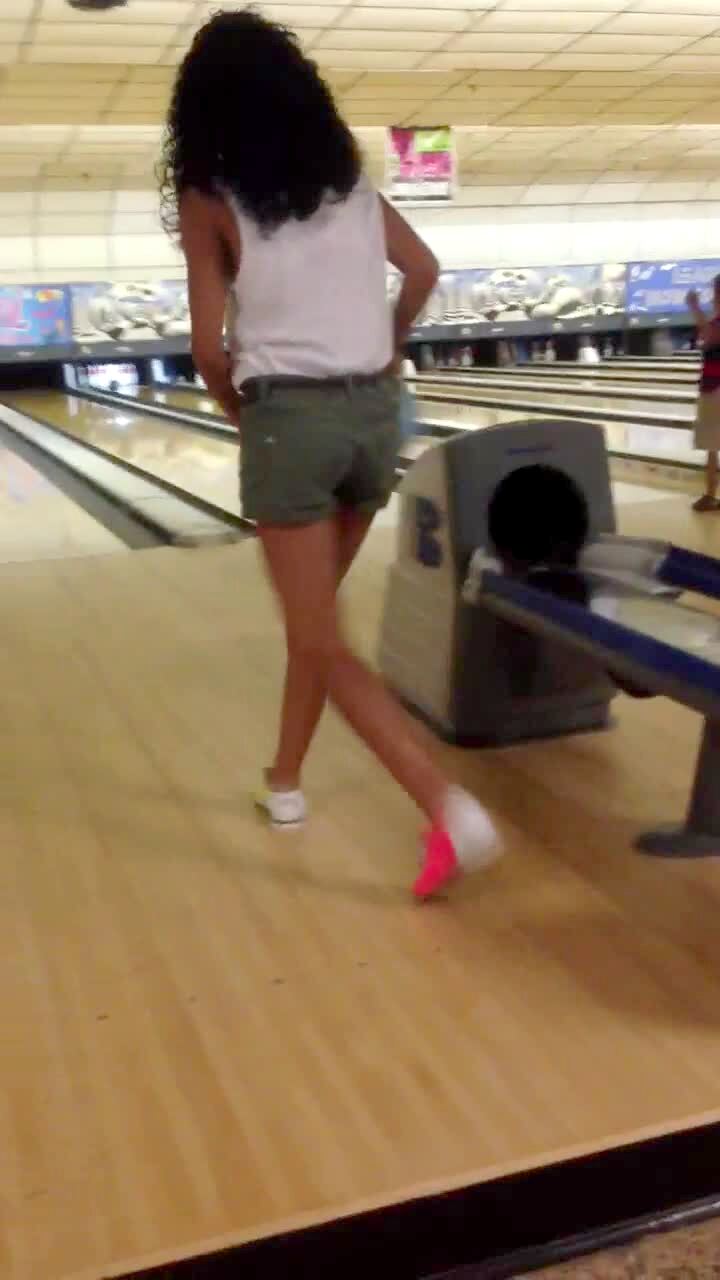 A girl dances on a bench in front of a roller rink when her tot brother pulls himself onto the bench, stands up, and pushes her off of it. Short tails.