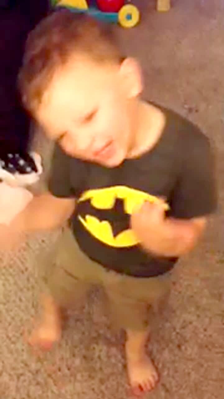 A tot two year old baby boy says "turn it off" and points to camera when mom asks "where's your left foot?"