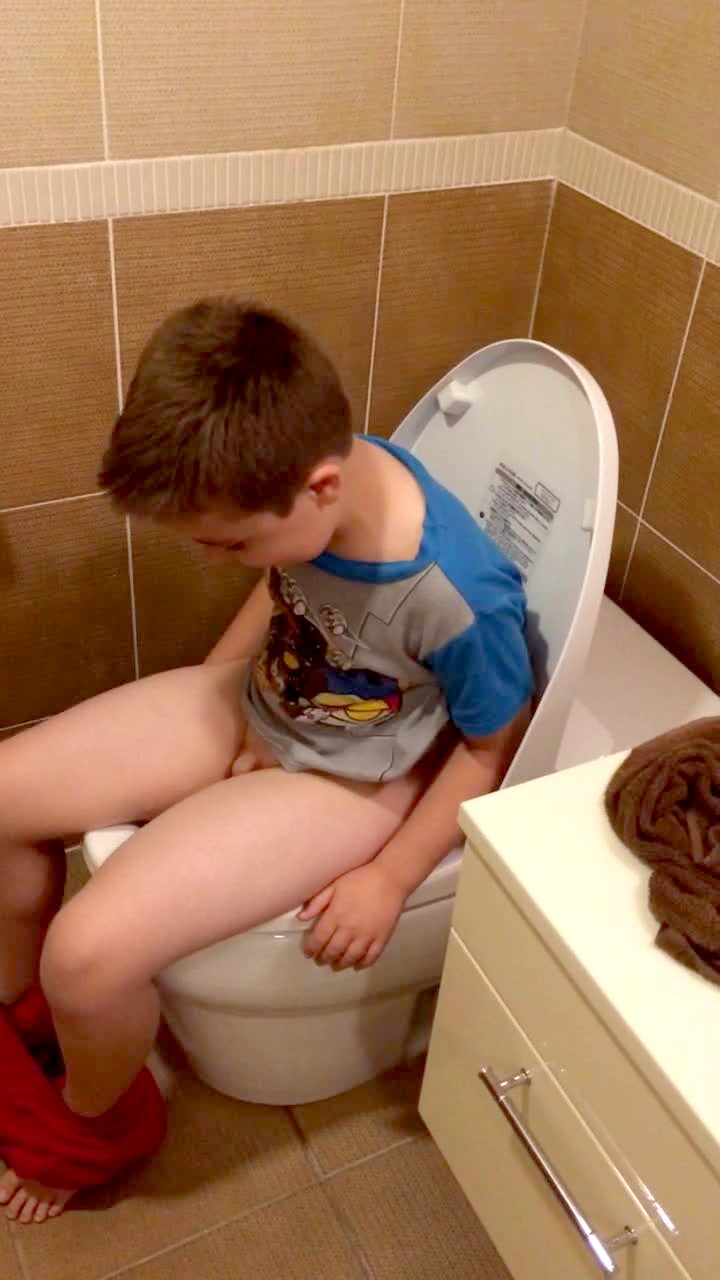 A woman tells her young son to push the bidet button on a toilet indoors and he makes funny faces while it runs indoors. He says it's hot. His dad tells him to hit the stop button and he says he doesn't want to turn it off.