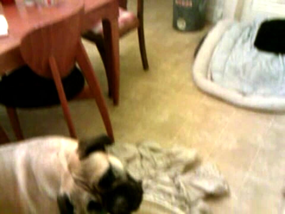 Dog tries to jump on a dock from in the water, dog hits his chest on the dock and falls back in while chasing after a remote controlled boat.