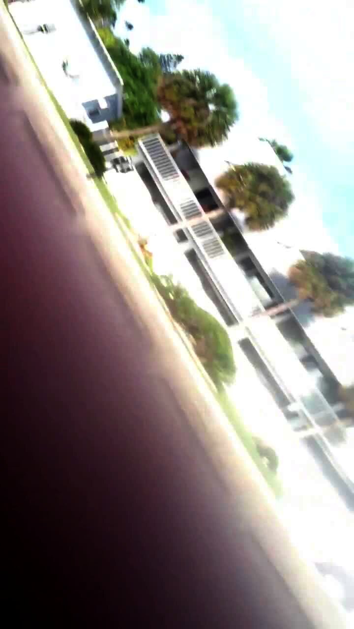 A woman dumps a bucket of ice water out of a window on a teen girl on the roof of a house. She slips and falls down. ALS Ice Bucket Challenge.