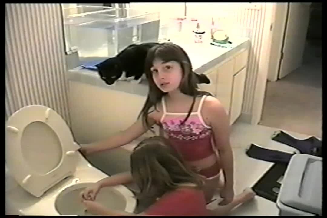 "Funeral For A Fin" 2 girls lose their goldfish, have a funeral over the toilet as the cat looks on. Younger girl cries hysterically. Stand alone.