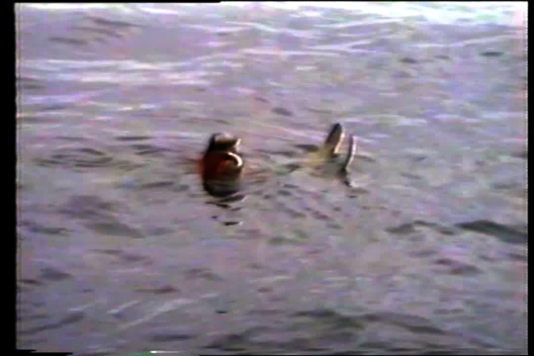 Proposal - Diver fishes out box which holds engagement ring. Tells girlfriend he found box in water. Boat.