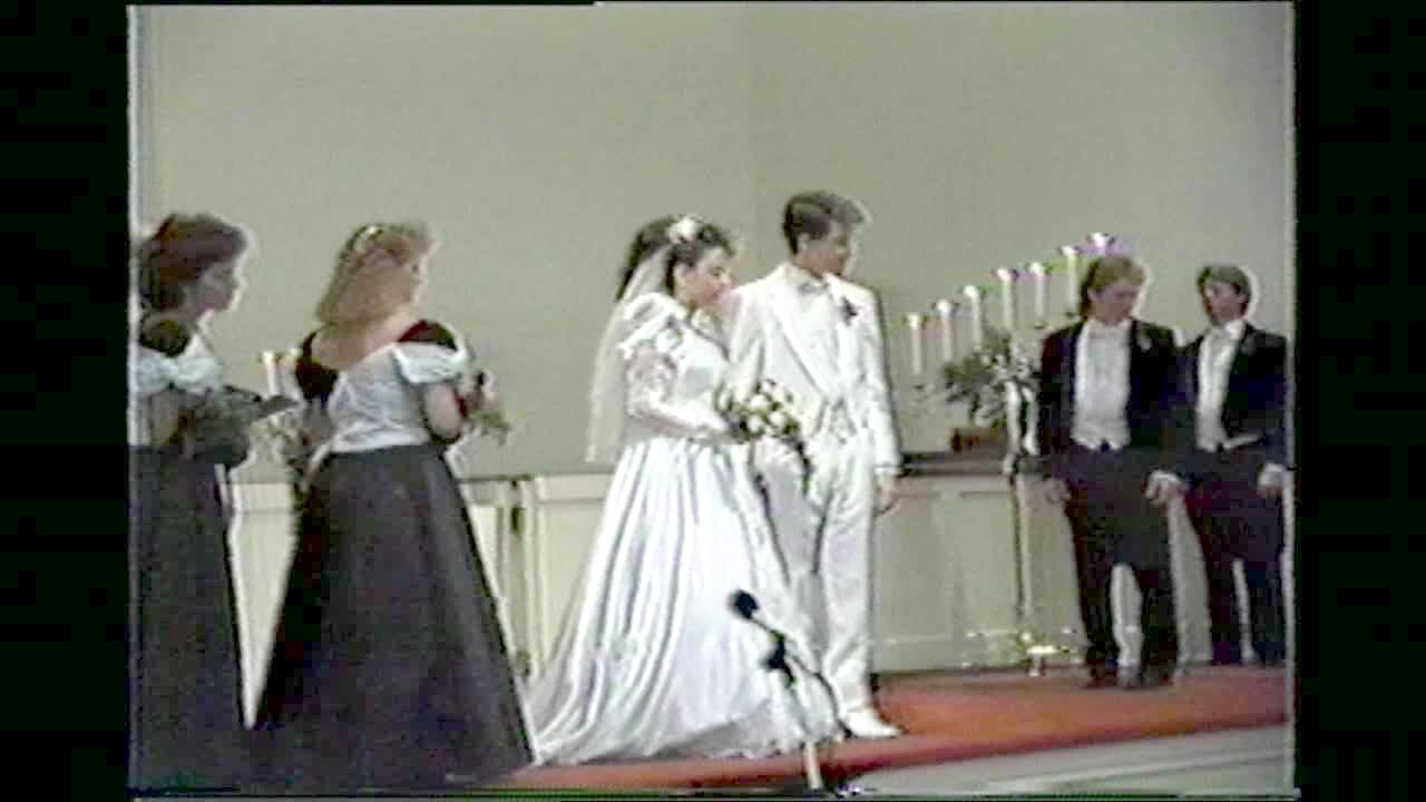 "I, NANCEE -- HI, NANCEE" Minister says "I NANCY," but bride thinks he says "HI NANCY," Cute.; vows. Older couple.