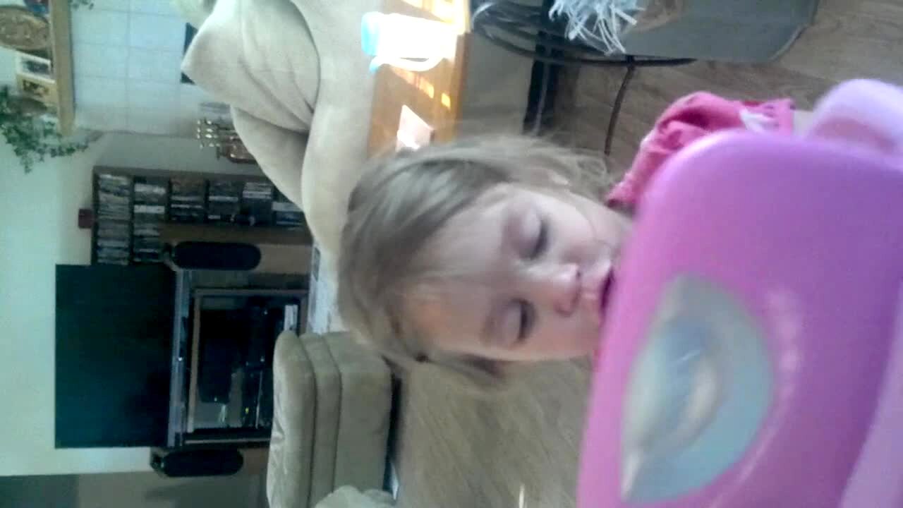 Tot girl picks her nose and feeds the boogers to her doll.