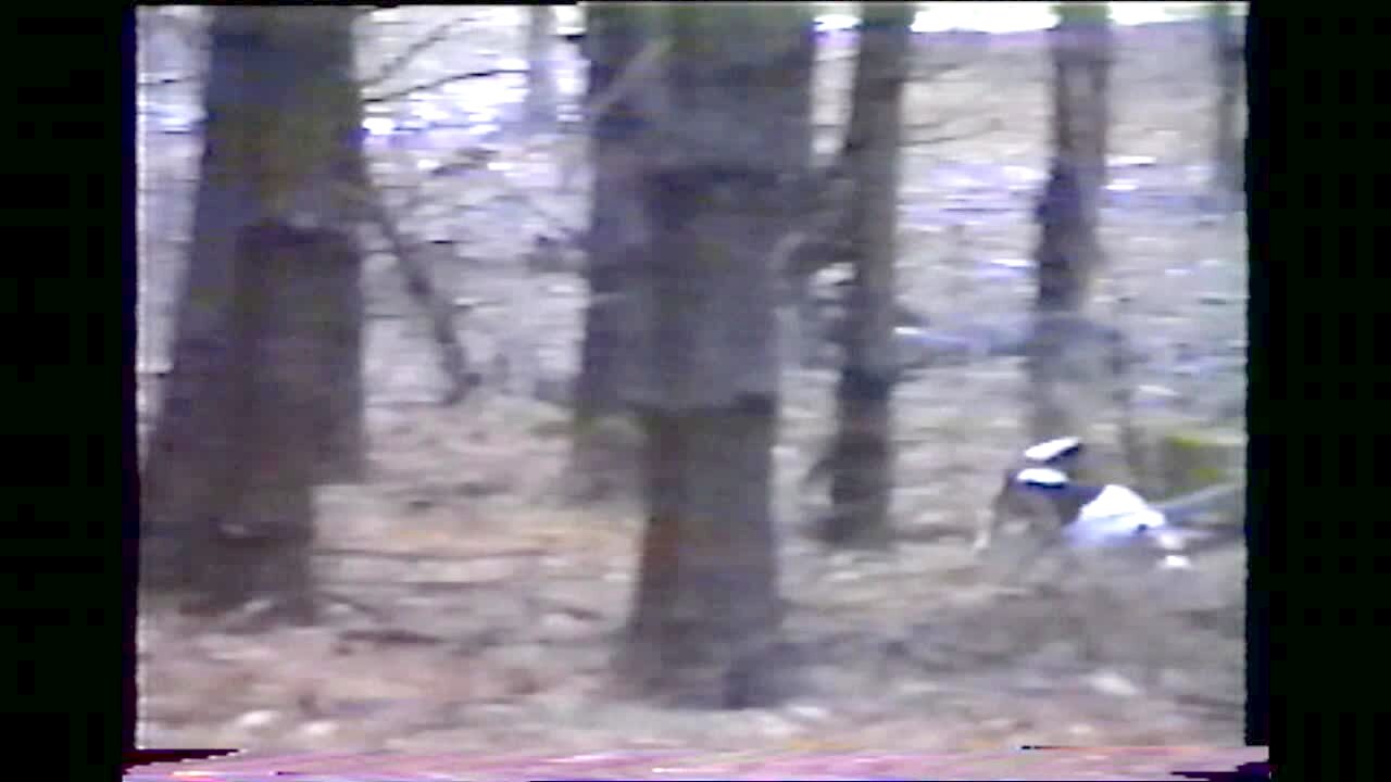 Dogs. Beagle goes behind tree, appears to clone into two.