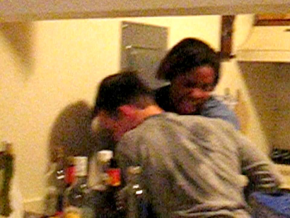 Woman play fights with man & she gets pushed into a wall, wall cracks.