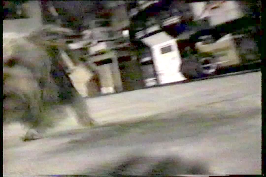 Angry little dog bites and chews on windows as it rolls up and down. Date on screen
