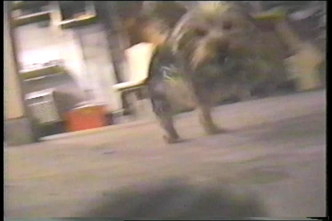 "Fence Climbing Dog" Small dog climbs chain link fence / cage in kitchen. Animal escapes.
