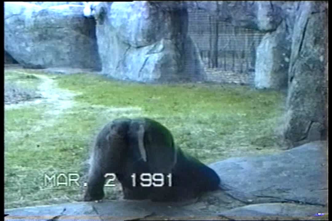 Baby bottle falls into gorilla pit at zoo off camera. Gorilla takes it and drinks from it on camera.