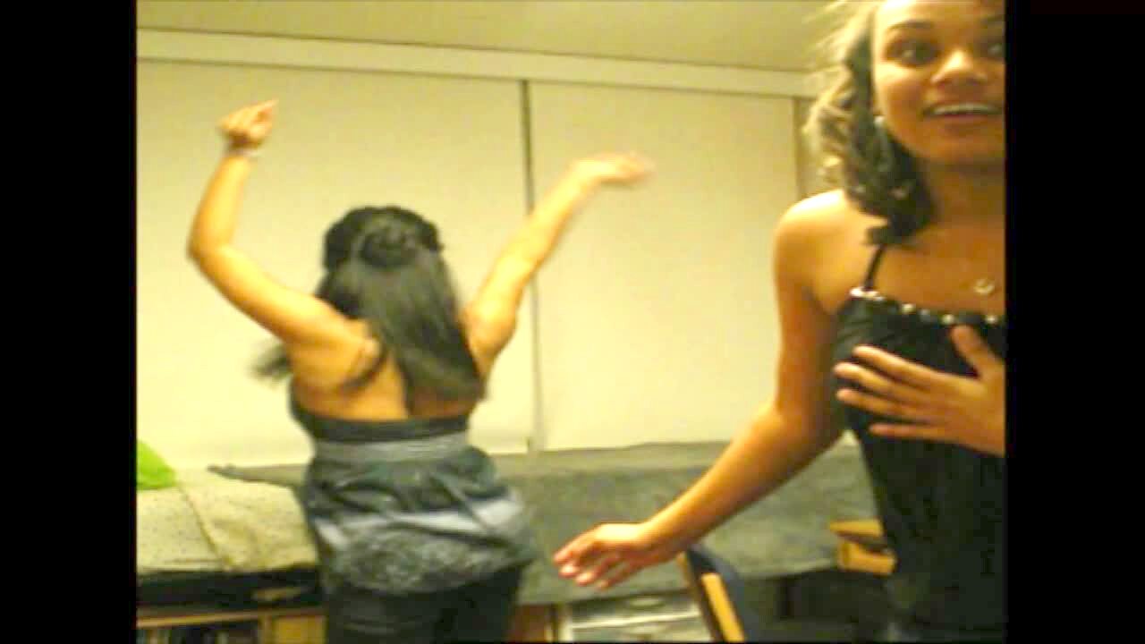 College-aged women wiggle their butts and dance to music in a dorm room. One rips her double zero jeans and is embarrassed. Music rights not cleared.