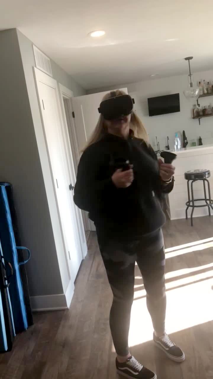 A compilation of clips where two women scare another woman repeatedly throughout the house.