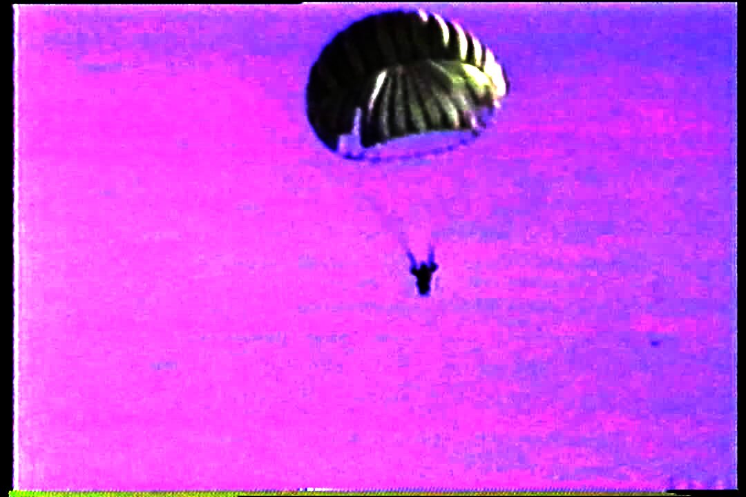 Power Gun Roaster. Men roast chickens attached to power tool.