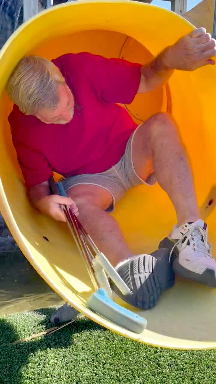 A teen girl hits her head when she falls on her back at a playground park after she goes down a slide while she sits on a skateboard. Snapchat banner: "Jun 6, 2017". Short tail.